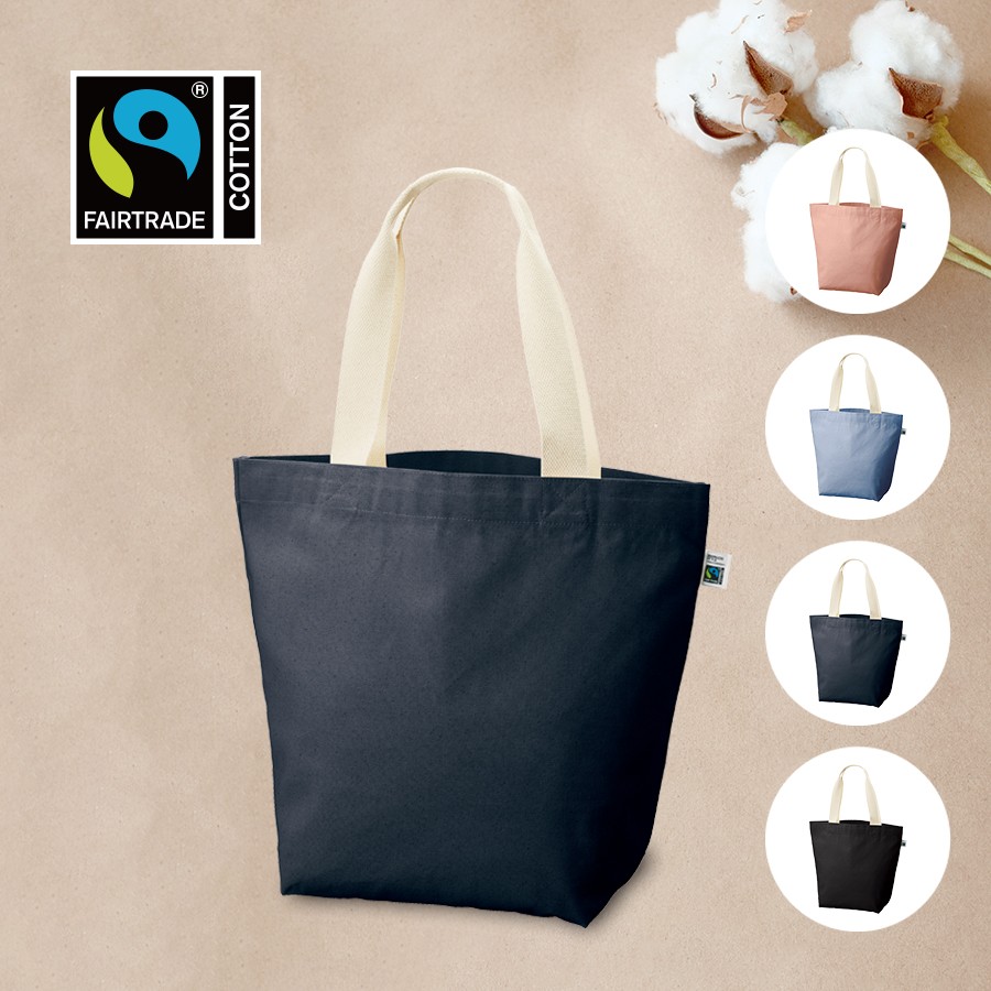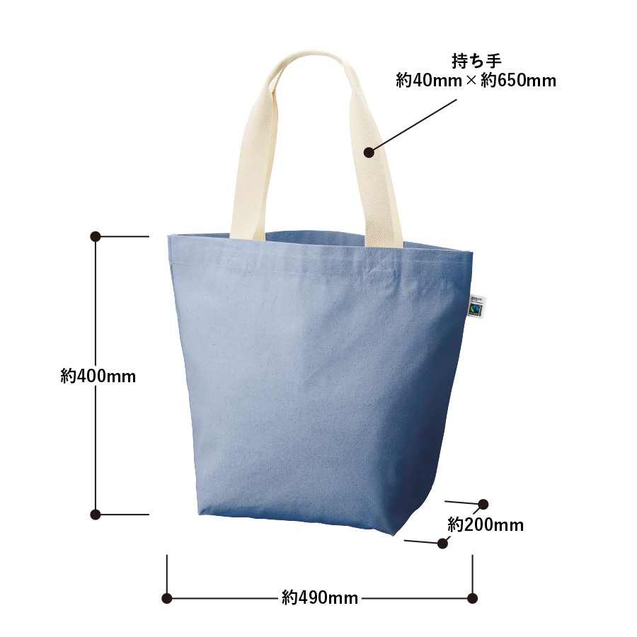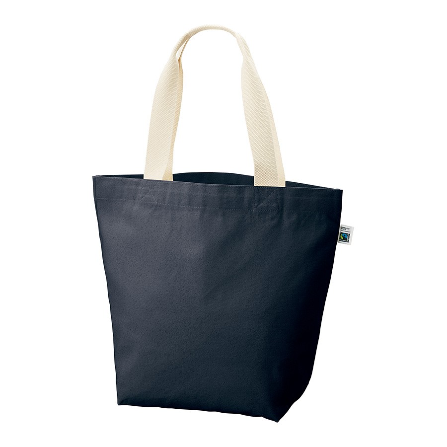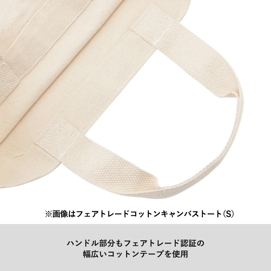フェアトレードコットンを使用した内ポケット付きコットンキャンバストートです。厚みがあり丈夫で、大容量のため旅行やアウトドアでも大活躍します。持ち手は二つ折り縫製されているので、肩掛けした時に、肩にフィットして肩掛けしやすくなっています。サイズは他にもSサイズ・Mサイズの2サイズ展開しています。国際フェアトレード認証ラベル付きのアイテムとなっており、SDGsやサスティナブルへの取り組みで企業価値を高められます。染色工場もフェアトレード認定工場で生産されており、染料は第三者認証を受けた製造工場で生産しているものを使用しております。