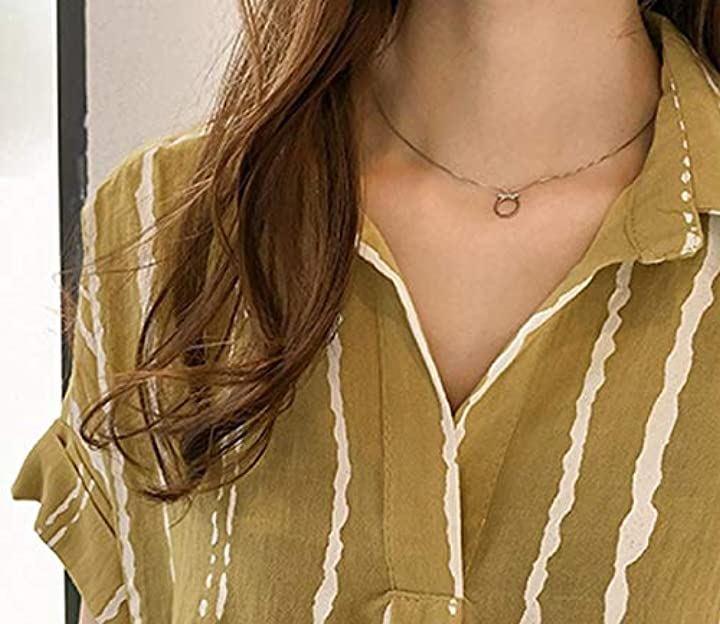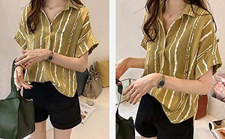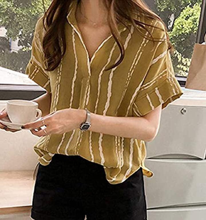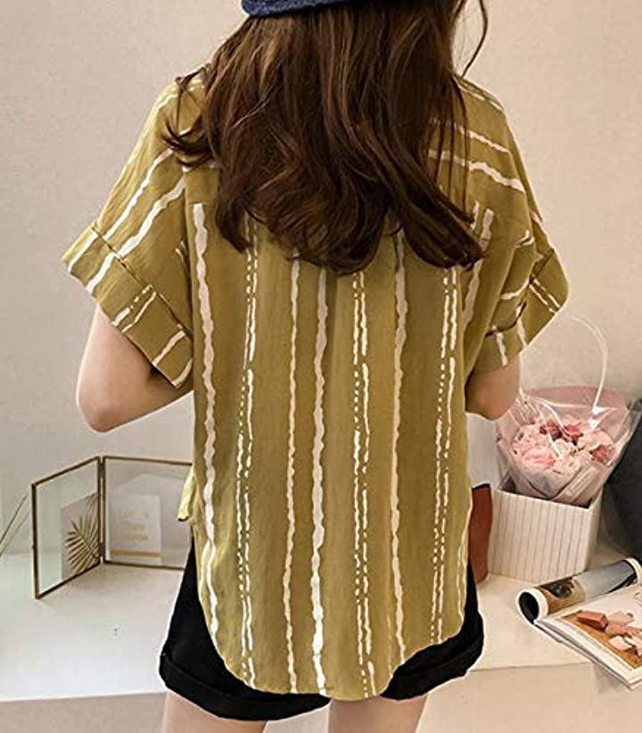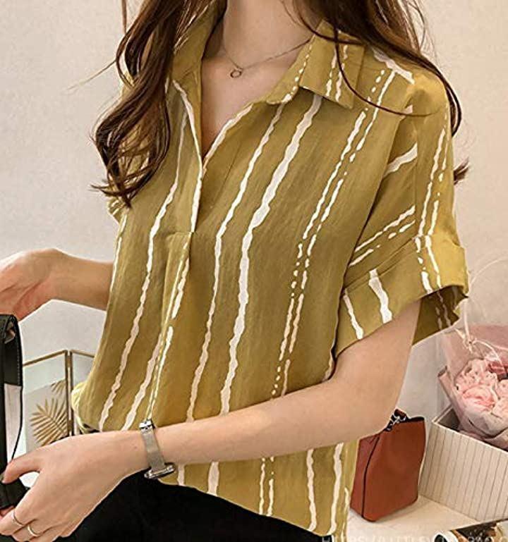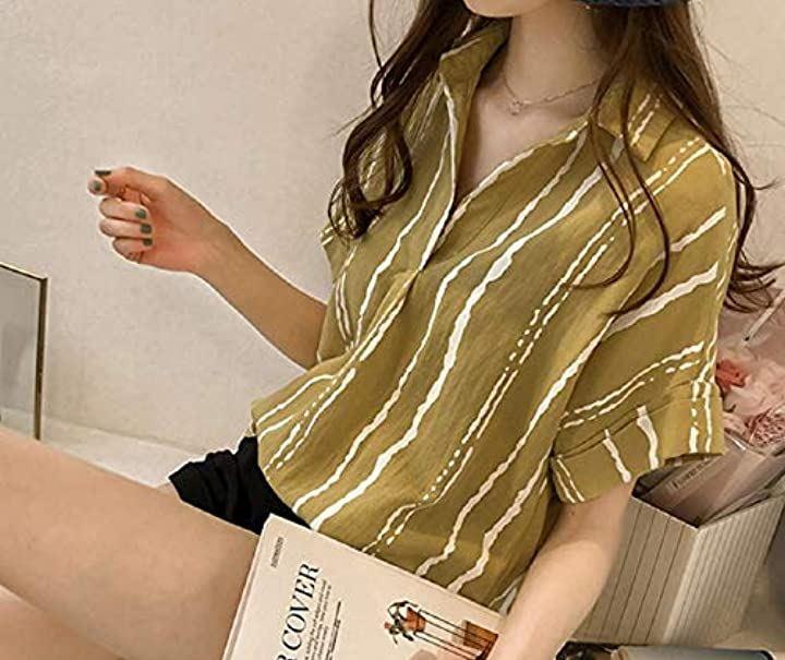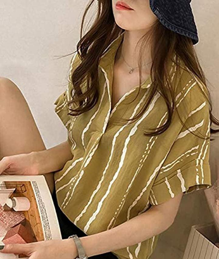 おしゃれ半袖ドライとろみデザインストライプM~2XLシャツ。