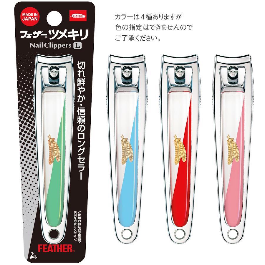 3営業日以内に発送≪新品未開封品≫:FEATHER(フェザー) ツメキリ 爪切り (Lサイズ) 日本製 飛散防止 キーパー付き 手足用 男女兼用 色おまかせ (色おまかせ) Lサイズ (x 1)