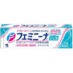 ■商品概要メーカー:小林製薬商品名:フェミニーナジェル 15g医薬品分類:第2類医薬品区分:OTC医薬品小児用区分:兼用薬剤形状:軟膏・クリーム内容量:15g商品概要:●局所麻酔成分と抗ヒスタミン成分が痒みをすばやく鎮め、殺菌成分がかゆみの元となる雑菌を殺菌します●パウダー配合のサラサラした使い心地なので、生理や汗など「ムレ」によって起こるデリケートゾーンのかゆみに適しています●ジェルなので、べたつかず、あと残りしません【使用期限】出荷時点で使用期限終了まで1年以上JANコード:4987072032077商品コード:075643751