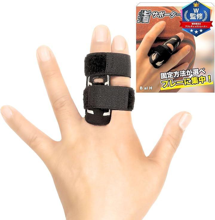 指を入れてベルトを巻きテープで固定するだけでテーピングよりも手軽に装着できる指サポーター