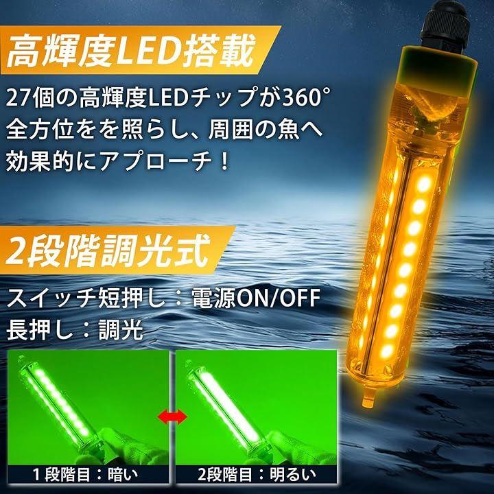 「高輝度の釣り用ライト」水中で使用する釣り用のLED水中集魚灯は、アジ、イカ、タチウオなどの堤防釣りにも最適です。