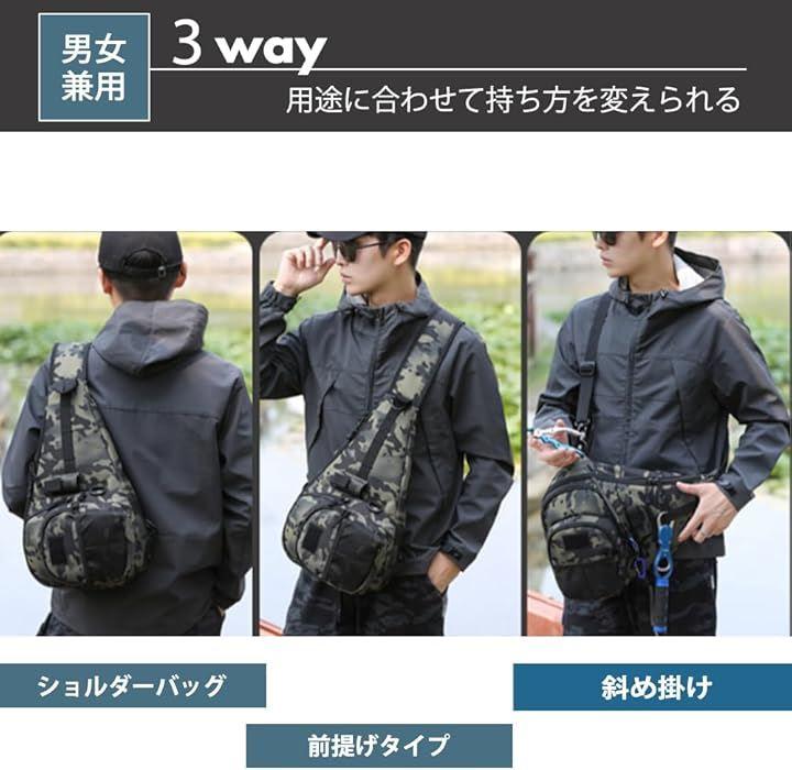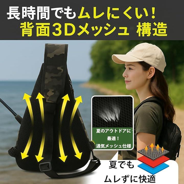 ・軽量設計で、1日中キャストしても疲れにくい。 カラー展開 v ブラック:シンプルで街にも馴染むカラー v 迷彩(カモフラ):アウトドアに映えるタクティカルスタイル v カーキ:ナチュラル志向の釣り人に人気。 こんな方におすすめ ・ルアーゲーム中心で、移動が多い釣りスタイルの方 ・ウエストバッグやショルダーバッグで収納が足りないと感じていた方 ・装備をコンパクトにまとめて、身軽に釣りを楽しみたい方