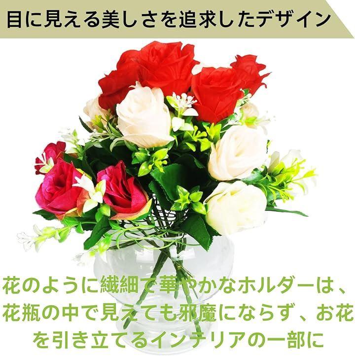 目に見える美しさを追求したデザイン 花のように繊細で華やかなホルダーは、花瓶の中で見えても邪魔にならず、お花を引き立てるインテリアの一部に。