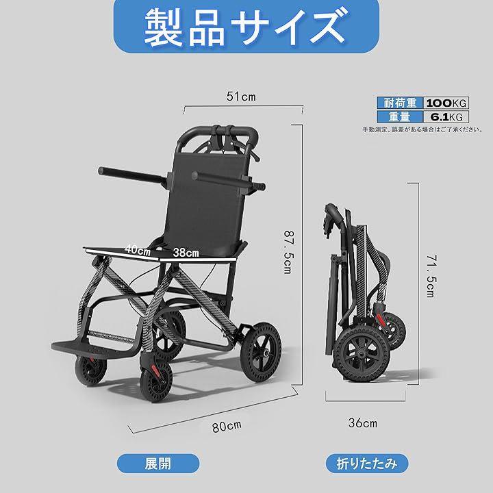 「コンパクトな折りたたみデザイン」この車椅子は軽量かつコンパクトで、屋内での移動や外出時の高齢者の介護に最適です。