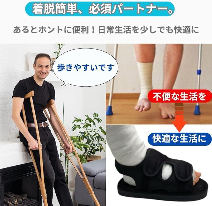 開口部が大きく開くので負傷箇所に負担無く、楽に足の出し入れができます。