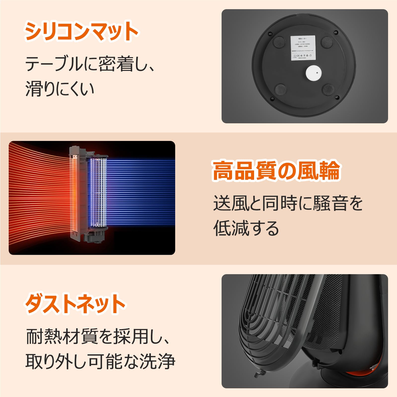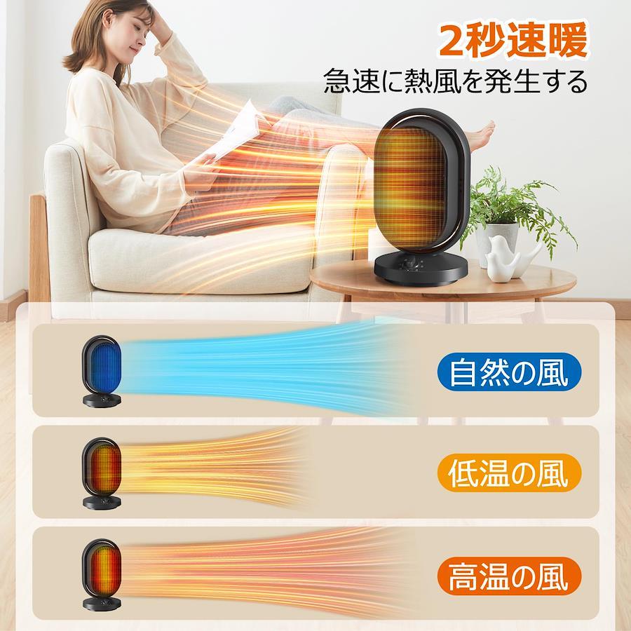 3営業日以内に発送≪新品未開封品≫:【2秒速暖 セラミックヒーター】ただ2秒で熱風を出し、外出の帰りでも早速、寒気を退散させ、体が早めに暖かくなることができます。電気PTCセラミックの発熱体で、直火がなし、空気にも体にも優しいです。家のキチン、脱衣室、寝室などの場所に思い切りに使用できる電気ファンヒーターです。【自動首振り&上下60°調節】左右130°の首振り機能付き、温風がもっと広範囲に届け、ずっと同じ角度で温風が吹かなく、皮膚乾燥および火傷のリスクを低減します。この電気ストーブは3階段切替可能、その日の気温に合わせて風量を調整できると、より使い勝手がアップします。【小型ヒーター 簡単操作】取りやすい取っ手もあり、女性が運んでもラクラク、放置にも収納にも優しいです。特に、寒い冬に、勉強の時とか料理を作る時とか仕事する時とか、足元に置くのは一番適用です。そしても、操作簡単、電源に入って適用の温風モードに切り替えます。【安全 ファンヒーター】①転倒時自動OFF機能を搭載され、本体が倒れると自動で電源が切れるから安心です。②温度の過上昇を防ぐ安全装置を備えることで、過熱による事故や怪我を防ぎます。ベービーやペットがいる