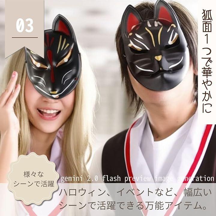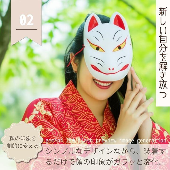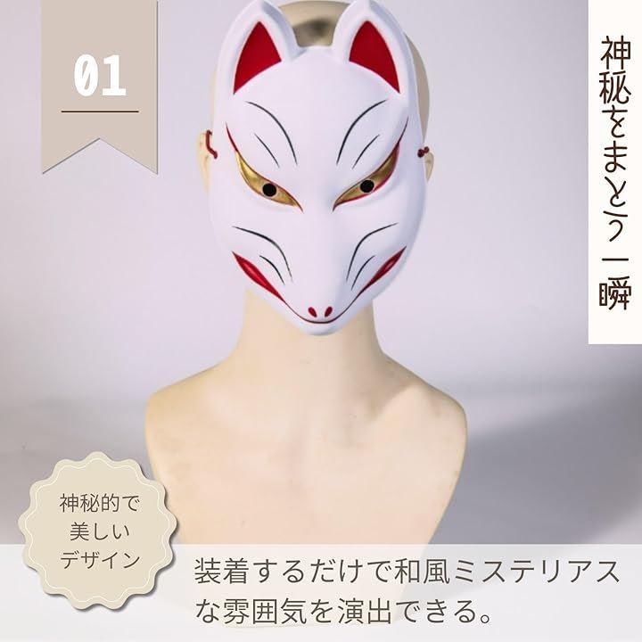 「顔の印象を劇的に変える」シンプルなデザインながら、お面を装着するだけで顔の印象がガラッと変わり、ミステリアスな雰囲気を演出します。