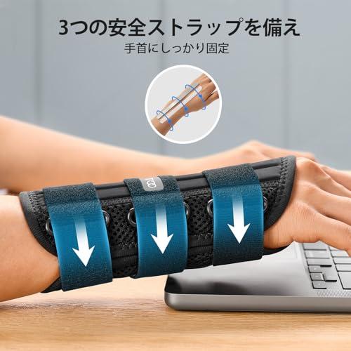 【 圧倒的な固定保護と回復サポート機能】 FREETOO 手首サポーターは高い固定力・圧迫力で手首を強力サポートします。 【しっかり固定し快適】当社の手首ブレースは、軽量アルミスプリントと3つの安全ストラップを備え、丈夫なハンドサポートを提供します。 解剖学的なデザインとソフトなクッションで快適に着用していただけます。手首から手の甲まで全体的に手首をがっちり固定。 【通気性があり高品質の素材】FREETOO 手首 サポーター 固定はメッシュ素材を使用しており、手と手首にとって快適です。 当社のプレミアムライニングは肌に対してとても柔らかく、付けていることに気付かないほどですが、そのメリットに必ず気付くでしょう。 【フルレンジの指の動き】 手首ブレースは手首をしっかりサポートしますが、指の動きを制限することはありません。 装着中、通常どおりのことを楽しむことができます。手のひら側と甲側のサンドイッチ構造。 不都合な手首のねじれや、掌屈(しょうくつ)・背屈(はいくつ)の動きを抑制。スポーツ時も、普段の生活の中でも使用可能。 【グローブのようにフィット】 お客様の手首に完璧にフィットするように努めています。 ですから、両手にフィットする交換可能なデザイン、という妥協はしたくありません。 その代わりに、左手と右手のオプションを各種サイズで提供し、お客様のニーズに合うようにします。 【プレミアム材質を使って】頑丈な縫いで長持ち保証。通気性にも保温性にも富む。水洗いできていつも清潔にお使いいただけます。