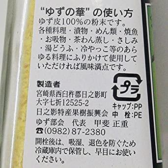 宮崎県産の柚子果皮100%を粉末にした香り豊かな香辛料。ゆずの持つ特有の香りと味を100%含有したゆず粉。ゆずの表皮を粉末加工した香り豊かな香辛料です。日之影の恵まれた自然の中で育った独自の味と香りを持つ良質のゆずは、果汁はもちろん、表皮も粉末又はねり状に加工され、香辛料やお菓子に利用されています。内容量:20g【重要】メーカーによる商品リニューアルに伴いパッケージ(内容量も含む)変更が行われた場合、新パッケージでお届け致します事ご了承願います。