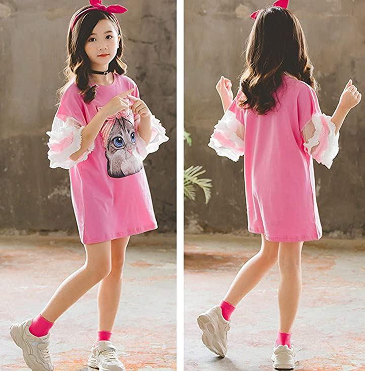 ・❀フロントにはカラフルでの可愛い猫プリント、夏の暑い季節にはピッタリのロングTシャツワンピです。