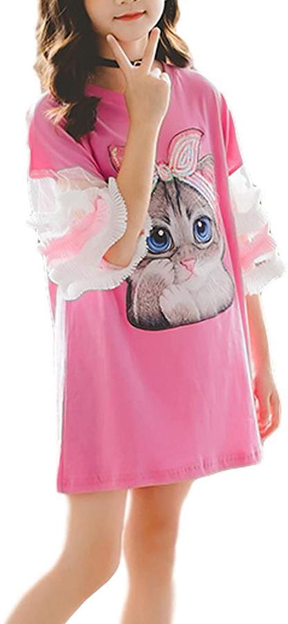 ・フロントにはカラフルでの可愛い猫プリント、夏の暑い季節にはピッタリのロングTシャツワンピです。