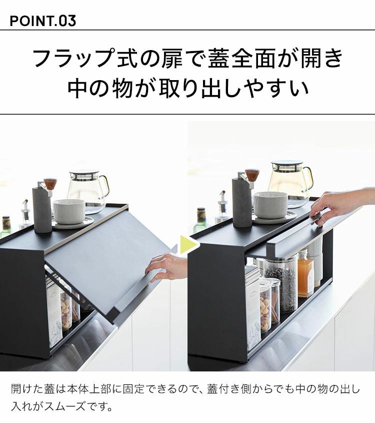 ■関連キーワード前が開くキッチンカウンター上収納ラック D15 山崎実業 タワー おしゃれ 隠す スリム コンパクト 調味料ラック スパイスラック 両面開閉 両面取り出し フラップ扉 tower 大容量 ブレッドケース 扉付き 奥行15 幅60 収納 ラック ケース 棚 ホワイト ブラック 白 黒 1452 1453 公式 キッチン収納 カウンター上 ブレッドボックス 便利 目隠し ロータイプ キッチンカウンター 収納 上置き ミニ 食器棚 片面扉 片面オープン シンプル スタイリッシュ キッチン 台所 スペース 有効活用 横長 完成品 yamazaki 山実 やまじつ ヤマジツ やまざきじつぎょう たわー towerシリーズ ブランド インテリアブランド