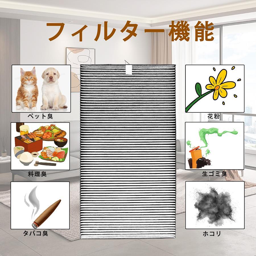優秀な捕集機能、高効果な脱臭機能:ホコリ チリ、タバコの煙(粒子)、ペットの毛、タバコのにおい、トイレのにおい、生ゴミのにおい、ペットのにおいなどを捕集できます。料理臭、ペット臭、部屋干し衣類の生乾き臭、体臭、加齢臭などを消臭できます。
