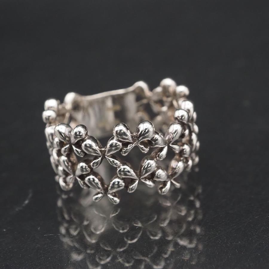 G963 Vintage SILVER925 Stamped Ring with Flower Design, Size 12