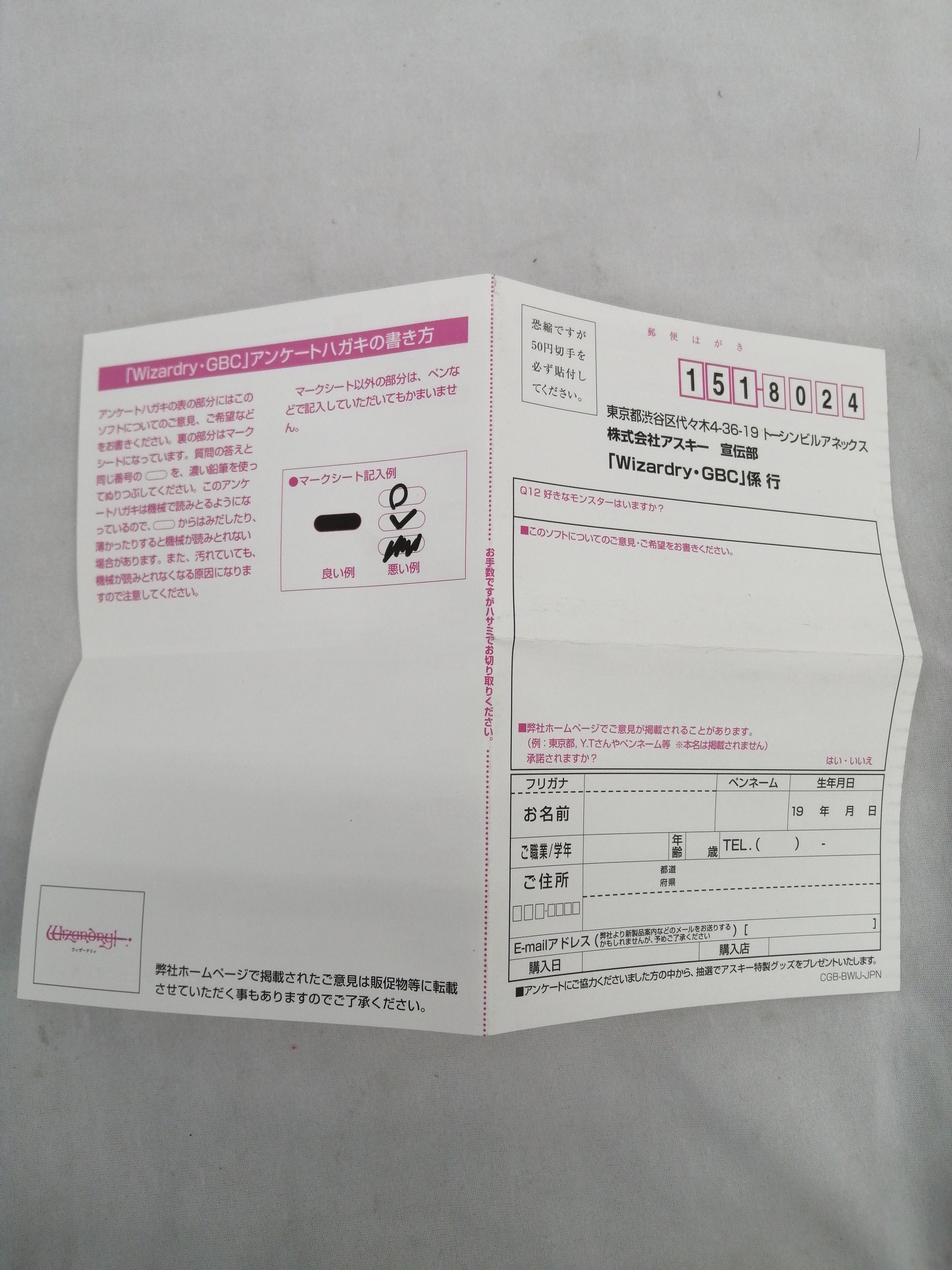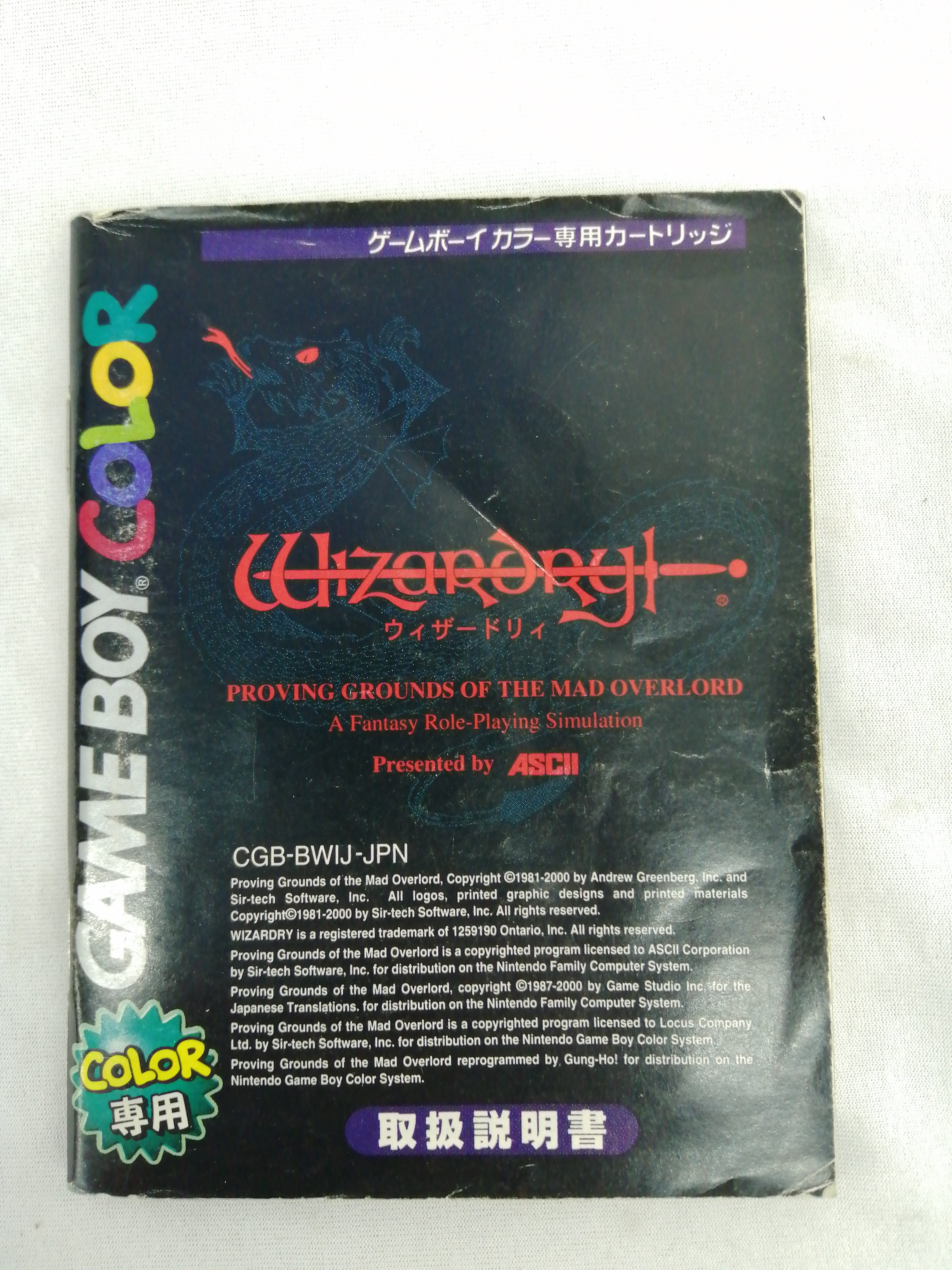 ゲームボーイカラーソフト ウィザードリィ アスキーメディアワークス ゲームボーイソフト アスキーメディアワークスウィザードリィゲームボーイカラーソフト