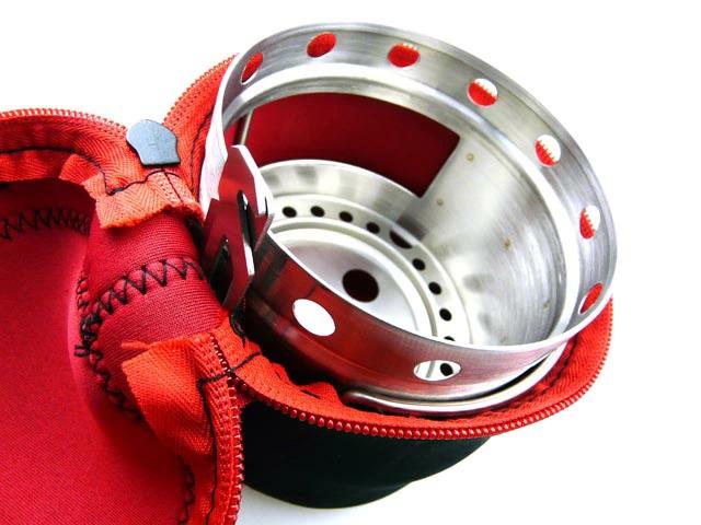 アルコール燃料や固形燃料、薪木や枯れ葉他の自然燃料など、多くの熱源を使用できる優れ物。内部にセットする高さ調整プレートは、凹面でアルコールバーナーや薪木などの自然燃料、凸面で固形燃料を使用します。