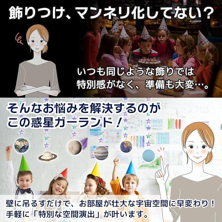 「お部屋が壮大な宇宙に。太陽系と宇宙飛行士のパーティーガーランド」壁に飾るだけで、子供部屋があっという間に太陽系の宇宙空間に大変身。