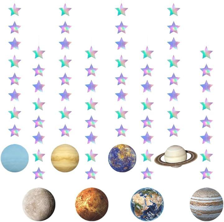 水星から海王星までの8つの惑星に加え、宇宙飛行士やたくさんの星がセットになった、夢あふれるデコレーションです。