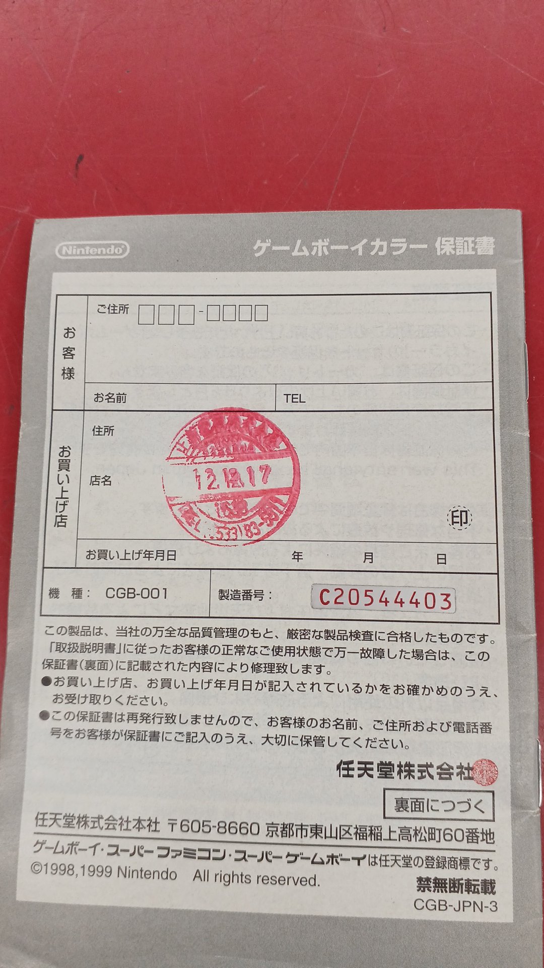 GBカラー CGB-001 NINTENDO レトロゲーム NINTENDOCGB-001GBカラー■注意事項店舗詳細ページに記載内容をご確認の上、ご注文いただきますようお願いいたします。