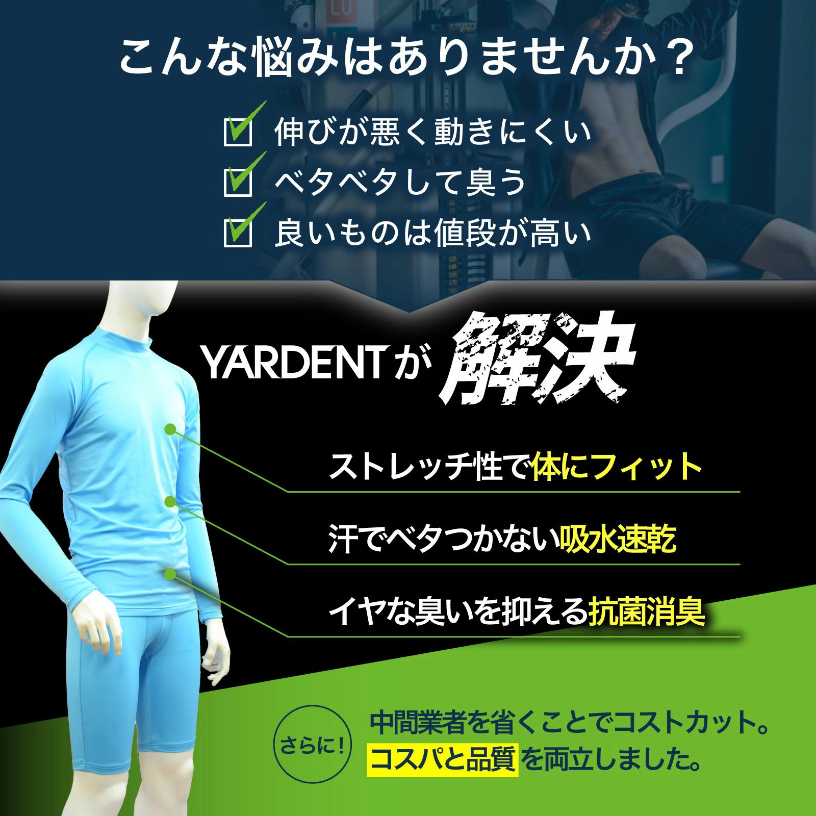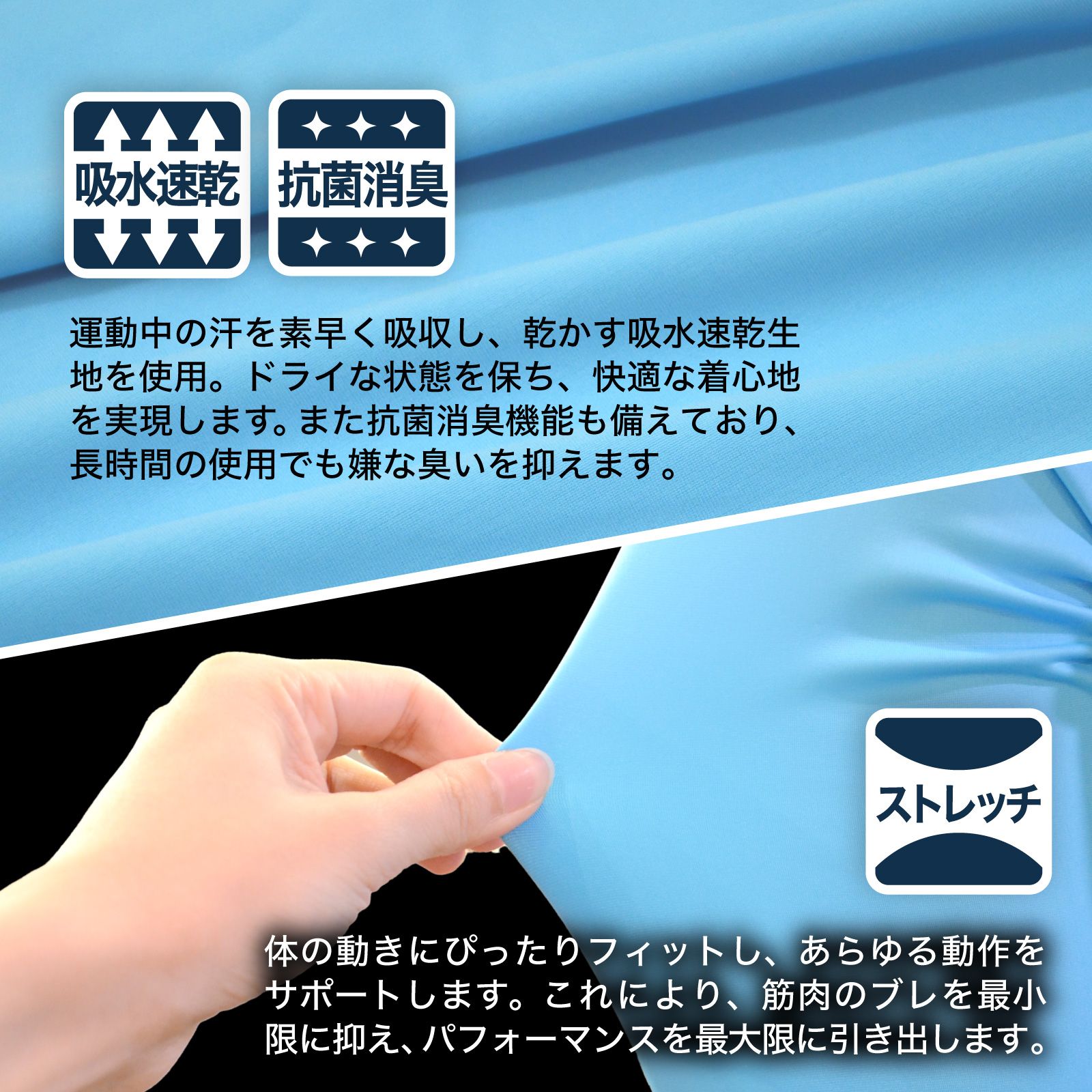 『安いインナーはペラペラ、、』『でもしっかりしたインナーは締め付け感が窮屈で、、』という意見をもとに、しっかりした生地を使用しながら運動の邪魔をする無駄な締め付けを排除しました。