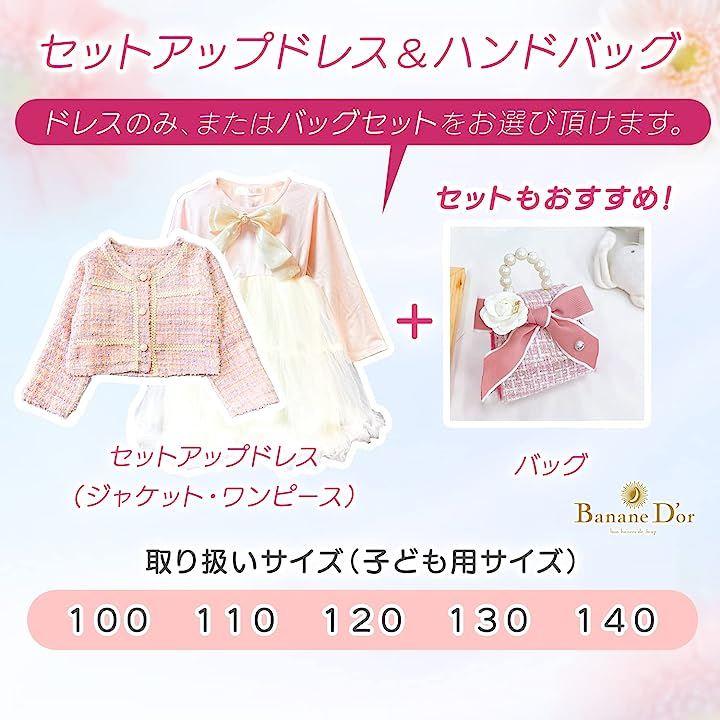 BananeD'or バナーヌドール 女の子 結婚式 ワンピース ドレス セットアップ チュール スカート セット ピンクのジャケットと、ふわふわチュールが可愛いらしいワンピースのセットアップドレスです。