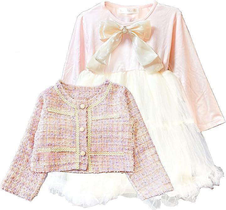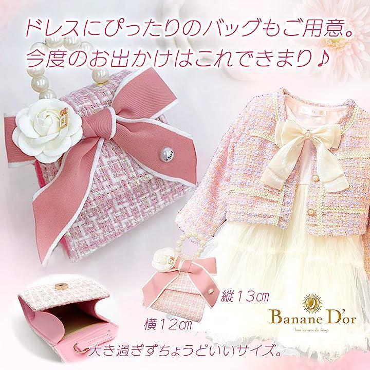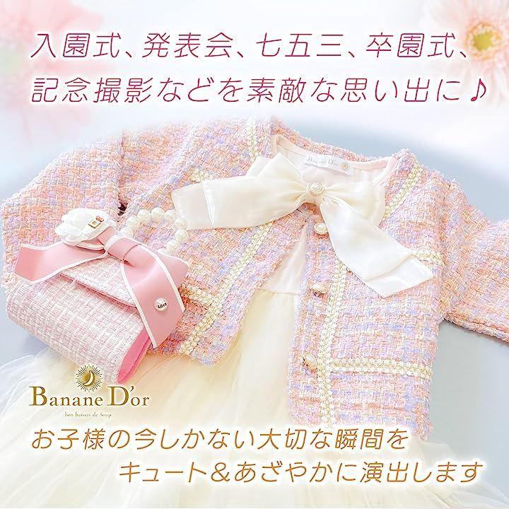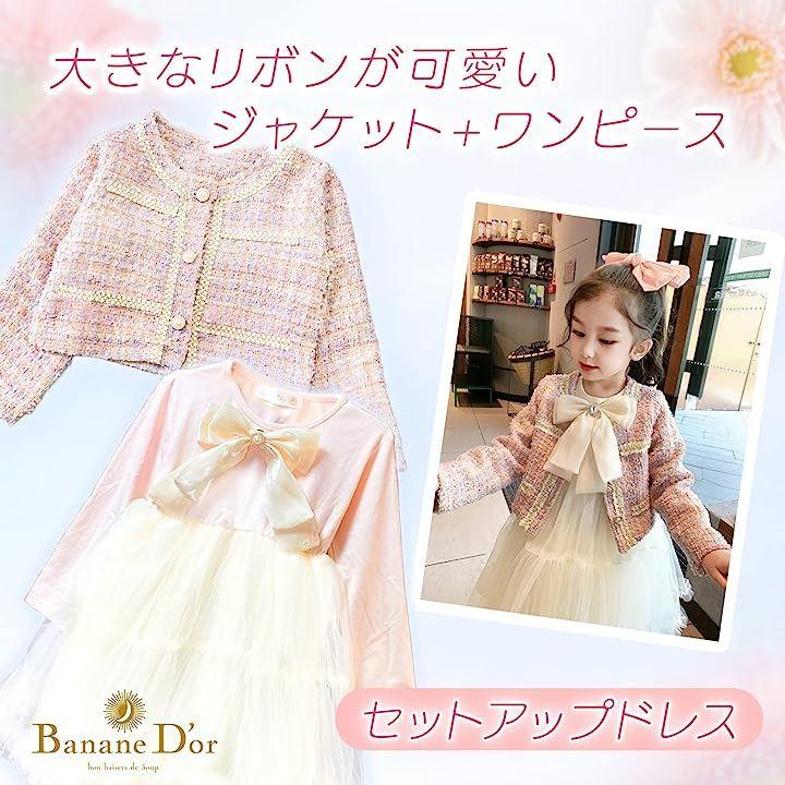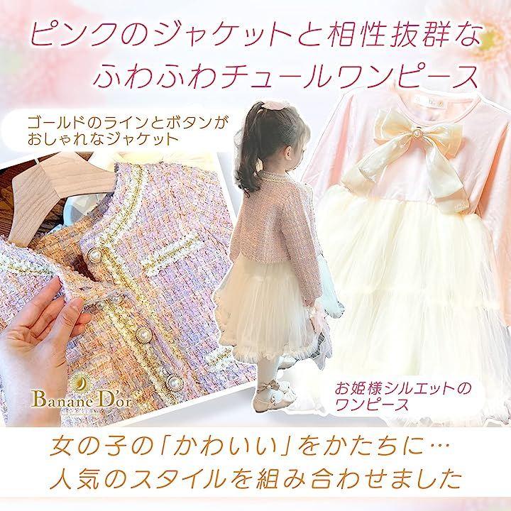 BananeD'or バナーヌドール 女の子 結婚式 ワンピース ドレス セットアップ チュール スカート セット ピンクのジャケットと、ふわふわチュールが可愛いらしいワンピースのセットアップドレスです。