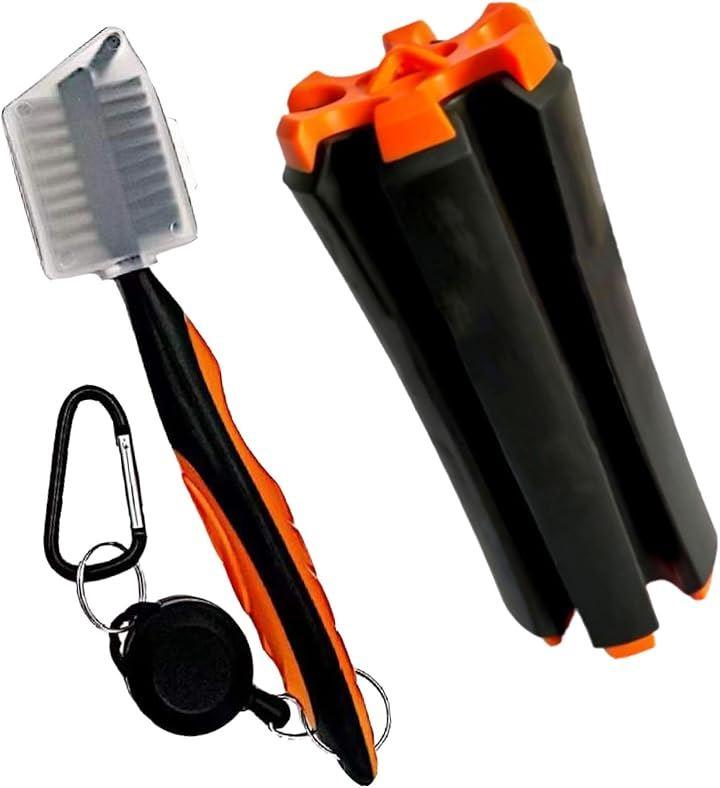 両側にワイヤーとナイロンブラシを備えたこのツールは、ゴルフアイアンやポールをきれいに保つために最適。