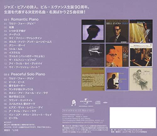 2019年生誕90周年を迎えたジャズ・ピアノの詩人、ビル・エヴァンスの決定的名曲・名演ばかりを収録したベスト・アルバム。ドキュメンタリー映画『タイム・リメンバード』の日本公開や、トレードマークのメガネを復活させたモデルが国内発売されるなど、いまだにその人気は衰えません。Disc 1にはトリオ編成の名演を中心に、Disc 2にはソロ・ピアノのピースフルな演奏を厳選して収録。 (C)RS