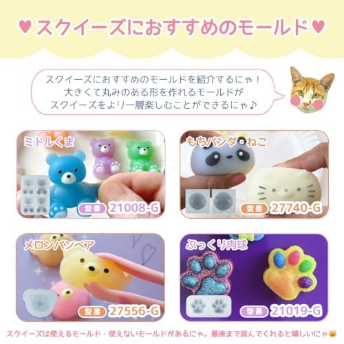 3 squishy textures that are fun to touch; Just mix 2 liquids and flush into the mold to create your own squishies. The "Gummy Tactile Type" gives you a high resilience feel that you will get rid of stress by squeezing it or squeezing it into your body, and the "soft touch type" that feels like you want to protect. The "Konjaku Jelly Touch Type" is now available in a beautiful transparency and just the right amount of softness. Choose from 3 different types. Includes instructions for making it safe even for first-time use. Try using a special coloring agent and sealing. Product model number: 27739-G Middle Bear Silicone Mold; Product Number: 27740-G Mochi Cat Mochi Panda Silicone Mold; Product Number: 27556-G Melon Pan Bear Silicone Mold Product Model Number: 2 5592-G Bear Plush Silicone Mold; Product Model Number: 21019-G Paws Silicone Mold; Product Model Number: 27408-G; Pepper Bear / Rabbit Silicone Mold; Product Model Number: 20880-G Animal Mini Puding, Large and Small Set A, Silicone Mold; Product Model Number: C-5123-G Paws, Silicone Molds; Specifications Set Contents: Squeeze resin liquid 6.8 fl oz (200 ml) A solution 3.5 fl oz (100 ml), B liquid 3.5 fl oz (100 ml), Instruction manual (English language not guaranteed) Color: Clear Ingredients: Gummy Taction: Vinyl terminal polydimethylsiloxane, molten silica, silicone resin, poly (methyl hydrosiloxane), hexacolo white gold (IV) acid hexade-hydride chlorosilohydride bonate, silicone. Xane, Melting Silica and silicone resin; Konyaku Jelly; Texture: Vinyl terminal polydimethylsiloxane, molten silica, silicone resin, methyl hydrogene, polysiloxane, hexacolo white gold (IV) acid hexade); About the mold: The mold can be used with silicone molds, but there are cases that are not suitable for squeeze resin. Please check the QR code on the product page and the instruction manual included with the product. If you spray a squeeze resin onto a thin mold or complex shaped mold, the mold may be deformed. Once deformed, the mold will not return to its original shape after the squeeze resin is solidified. Moldings that can make small pieces are not suitable as they may cause hardening. The thick mold and bottom support can be used for squeeze resin. However, depending on the ingredients in the mold may cause hardening defects. If the unhardened resin is left in the mold, it may cause the squeeze resin to harden. After using the resin work, wipe clean with alcohol and a dry cloth before using. About the tools: When mixing squishy resin, please use disposable tools such as scatter and paper cups, rather than silicone cups or silicone mixing sticks. When using silicone tools, the squeeze resin attached to the tool may become difficult to peel. Since it creates a hardening heat, we recommend using heat-resistant materials such as paper cups, etc. About coloring: Please make sure to use "Squeeze Resin-specific coloring agent" when coloring. Mixing with regular resin coloring may cause poor hardening. If you add a large amount of "Squeeze Resin" coloring agent, it will not harden completely, such as leaving a sticky residue. "Stain for Squeeze Resin" cannot be used with other resin liquids. Mixing with UV-LED resin or 2-liquid resin may result in the resin liquid separation and hardening failure. Do not use on resins other than squeeze resin. In the unlikely event that a regular resin coloring is mixed into a silicone mold, the squeeze resin may become adhesion to the mold and it will not be able to remove cleanly. About the finished product; The squeeze after curing will seep a small amount of oil from the squeeze. Placing it on paper, wood or leather products may cause oil to penetrate into the material and it may become oily stained or wiped off. Please be careful not to leave the finished piece on silicone products such as silicone molds and silicone mats. The oil content of the squeeze resin will affect the silicone product, resulting in distortion and unevenness. If you are concerned about stickiness when you remove the mold, sprinkle baby powder as you want, and it will not stick to it. If you pull the squeeze piece forcefully, there is a risk of breaking. If you place the finished product in a high temperature place for a long time, it may become too soft or melt. If your finished work becomes dirty, please wash it with water. Note: Do not mix squishy resin liquid with different texture. We cannot compensate for any trouble. Please be aware of Please use it as soon as possible after purchase. Please keep away from direct sunlight and high temperatures. Do not expose to fire. Flammable liquid. Please be careful when using and storing. Please ventilate the room and wear protective gloves during use. Hand wash thoroughly after use. Those with sensitive skin or allergies may cause rash. Wash thoroughly with soapy water as soon as it adheres to your skin. In the event that it gets in your eyes, immediately rinse it off with a large amount of water and consult a doctor. The label on the bottle may be misaligned or peeled off. Please note that this is not a defective product. The sizes indicated are approximate. Actual measurements may vary slightly. Depending on the production lot, there may be differences in color even in the same color. 3 squishy textures that are fun to touch; Just mix 2 liquids and flush into the mold to create your own squishies. Choose from 3 different types. Even for the first time, it comes with an instruction manual (English language not guaranteed); Add a special coloring agent and seal to make your own squishy The "Gummy Touch Type" has a high resilience feel that can relieve stress by squeezing it or squeezing it into your hand The "wasabi texture type" is soft and feels like you want to protect it "Konjaku Jelly Touch Type" with a beautiful transparency and moderate softness just like water Specifications: Set Contents: Squeeze resin liquid 6.8 fl oz (200 ml) A solution 3.5 fl oz (100 ml), B liquid 3.5 fl oz (100 ml), 1 b