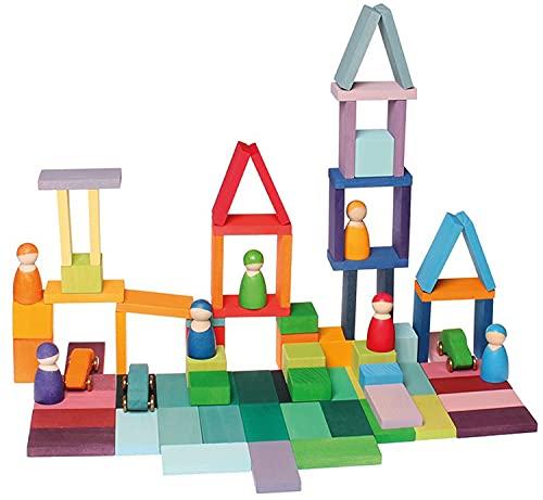 色鮮やかな積み木。ドミノにしたり、横向きに並べて道路にしたり、子どもの想像力で遊び方はどんどん広がる。きれいな色のグラデーションは順番に並べたり、グループに分けたりと遊びながら色彩感覚が身に付く。【グリム】 シュタイナーやモンテッソーリなどの思想をもとにデザインや製造が行われている。シンプルな形と美しい色にこだわって作られているため、想像力を膨らませながらずっと遊び続けられるだけでなく、インテリアとしても素敵な空間を作り出す