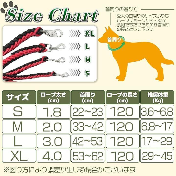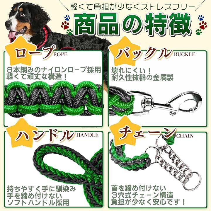 反射機能はありません 強い引っ張りにも対応するパラコードのリードは、通常はストレスフリーな構造ですが、引っ張ることで適度にチェーンが締まり、悪習慣の修正やしつけにも最適です