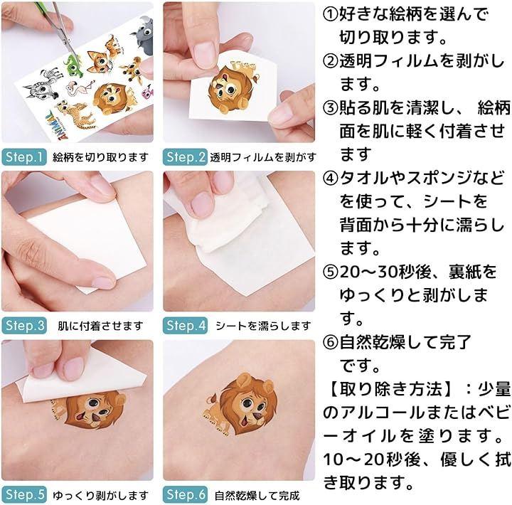 (3)貼る肌を清潔し、 絵柄面を肌に軽く付着させます (4)タオルやスポンジなどを使って、シートを背面から十分に濡らします。