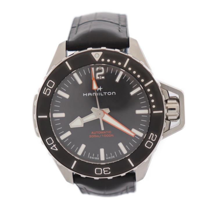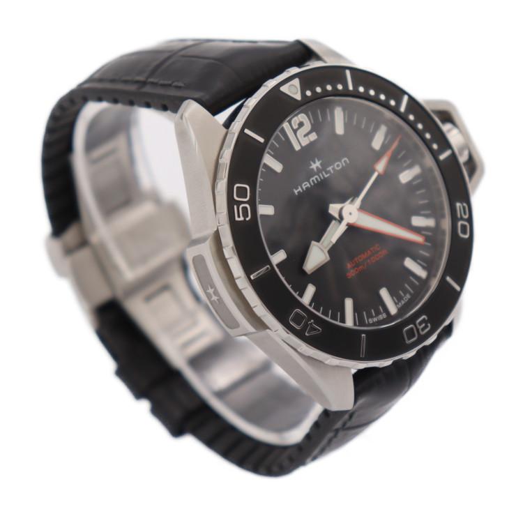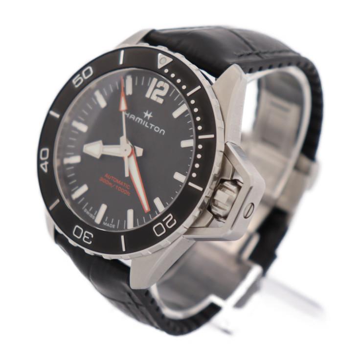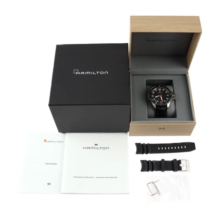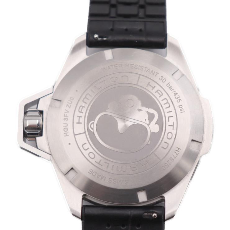 ■商品情報[管理番号]2311103002064[ブランド]ハミルトン(HAMILTON)[型番]H77825330[対象]メンズ[カラー]シルバー/ブラック[モデル]オープンウォーター オート[ライン]カーキ ネイビー[生産国]スイス[サイズ][ケース]約46mm[腕周り]約22cm[ケース厚み]約13.58mm[仕様]
