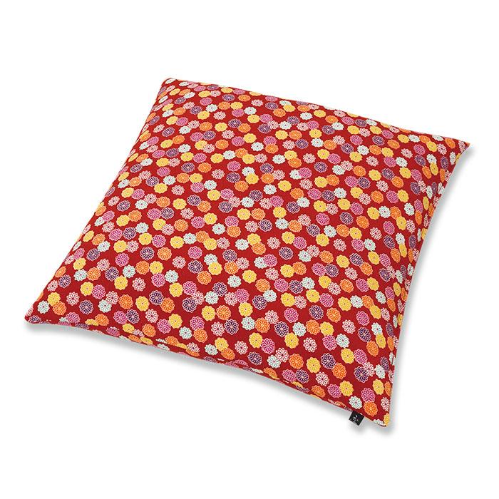 菊は放射状に開いた花びらから太陽になぞられ、高貴な花とされました。また古くから薬として使われていることもあり「高貴、高尚、延命長寿、無病息災、邪気払い」など様々な意味を持つ吉祥紋様として大切にされた日本人にとって身近な花の一つです。色彩豊かな【小菊】が咲き誇るこの柄は、昭和レトロな雰囲気を持つ可愛い仕上がりです。可憐な【白】と【赤】の2色をご用意しました。生地はポリエステルのちりめん織りで柔らかく細かなシボ(凹凸)を持ち、サラッと手に馴染むお手入れのしやすい素材です。【カバーサイズ】 横50㎝×縦50㎝【生地素材】 ポリエステル(ちりめん)100%この商品はカバー(ファスナー加工)のみです。中わたは別途ご購入ください。またカートの購入可能数より多い数をご希望の場合はご相談ください。