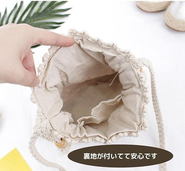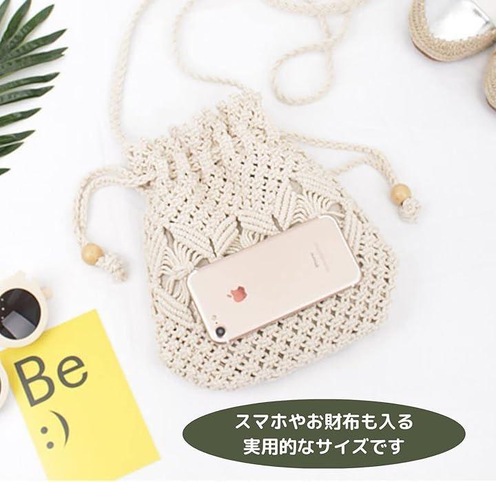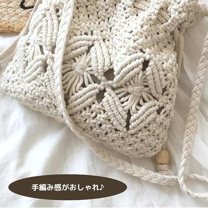 「特色」太糸で結び目を作りながら編みこんでいくマクラメが可愛い編みバッグです。