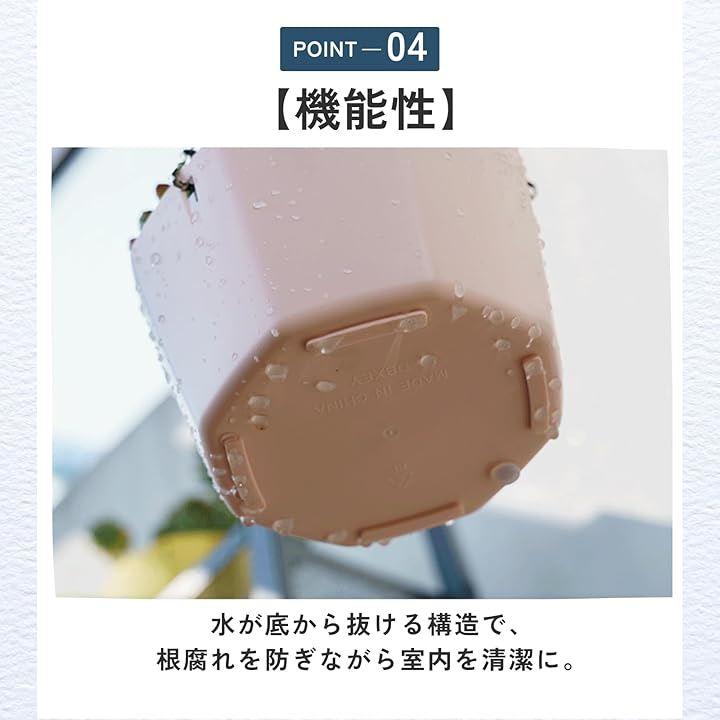 「機能性」水が底から抜ける構造で、根腐れを防ぎながら室内を清潔に。