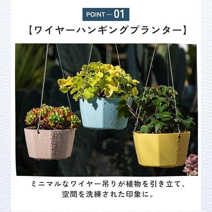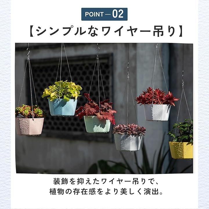 「ワイヤーハンギングプランター」ミニマルなワイヤー吊りが植物を引き立て、空間を洗練された印象に。