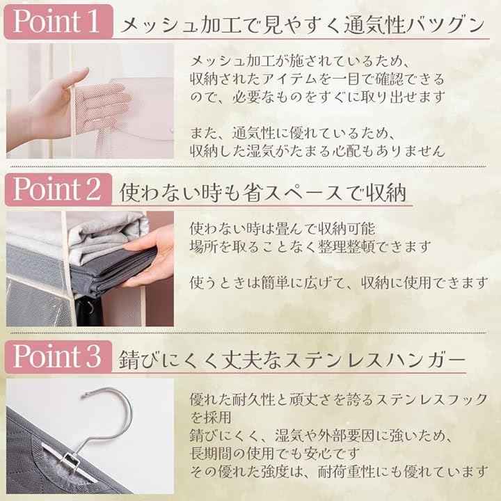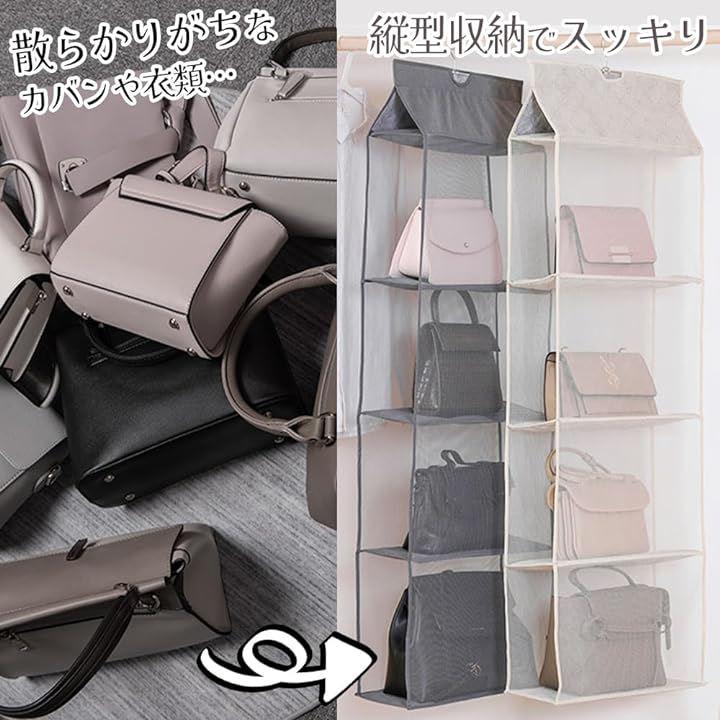 「メッシュ」透明カバーで、収納しているカバンがすぐに見えるので、迷わず選ぶことができるので凄く便利です。透明カバーで防塵効果はもちろん、中の物の出し入れも楽々です。