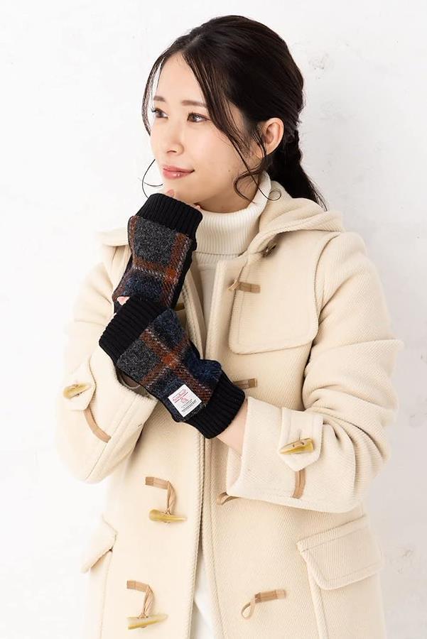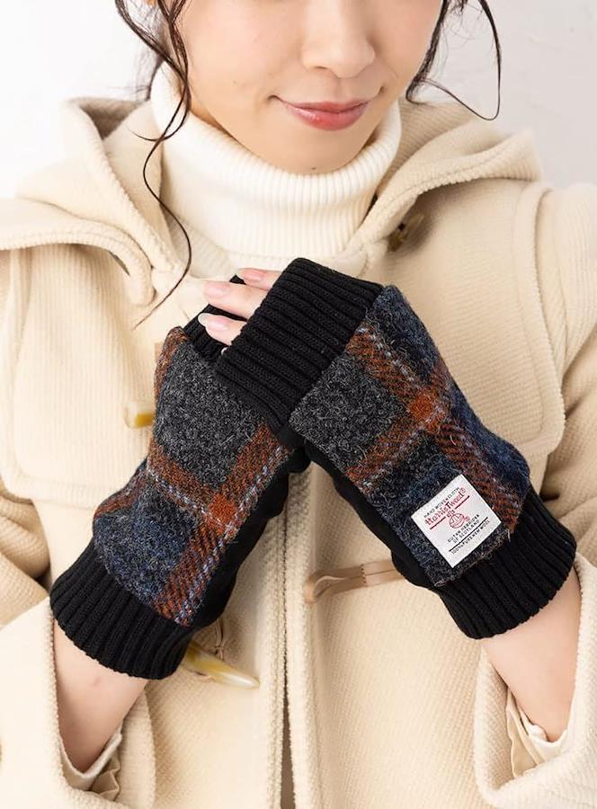 ケース入りなので自分用にはもちろん、贈り物にも喜ばれるハリスツイードのレディース用ミテーヌグローブです。