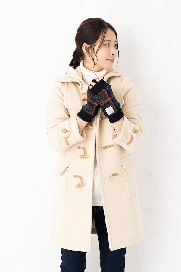 カジュアルデザインのハリスツイードがマッチして、カジュアルな装いに高級感を保ちます。