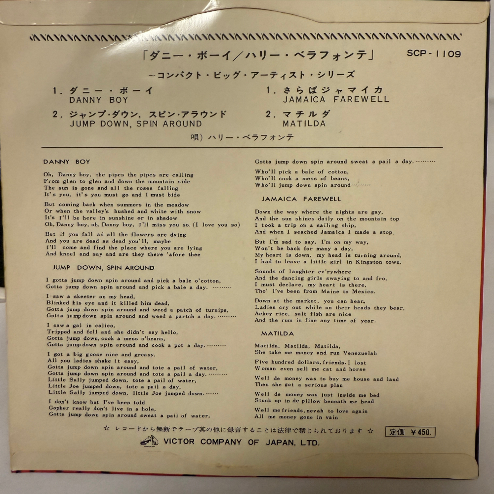 Harry Belafonte Showa Era Vintage EP Record Danny Boy Goodbye Jamaica 7-inch Extended Play
