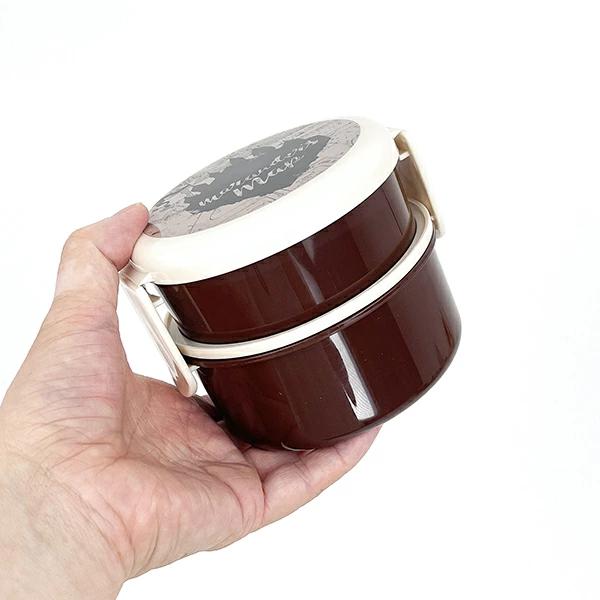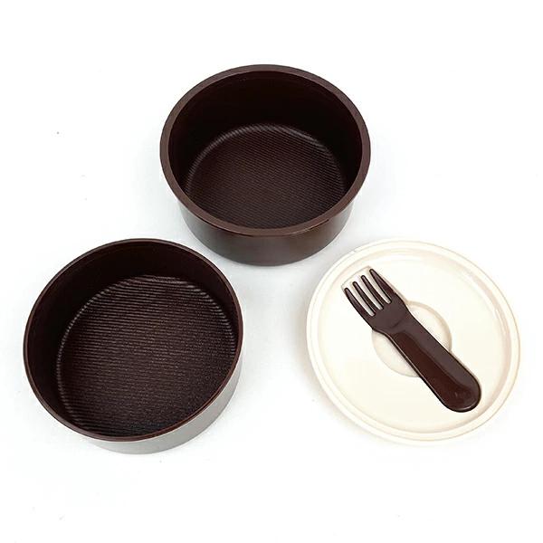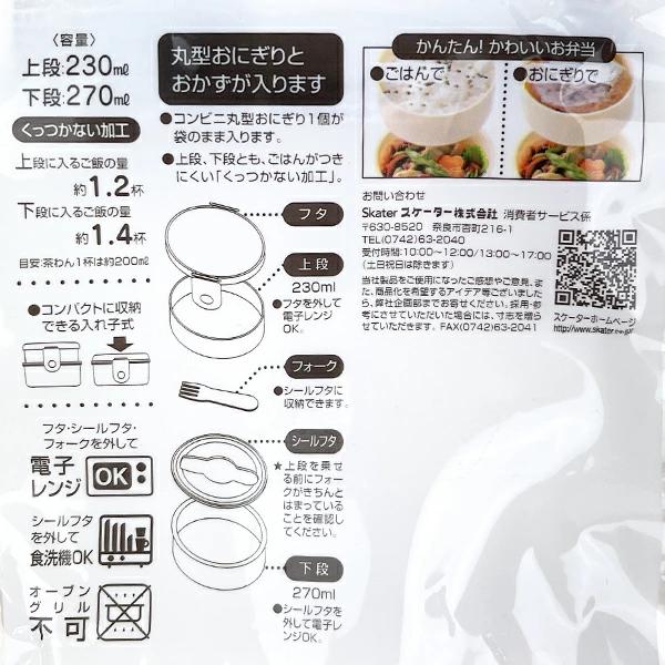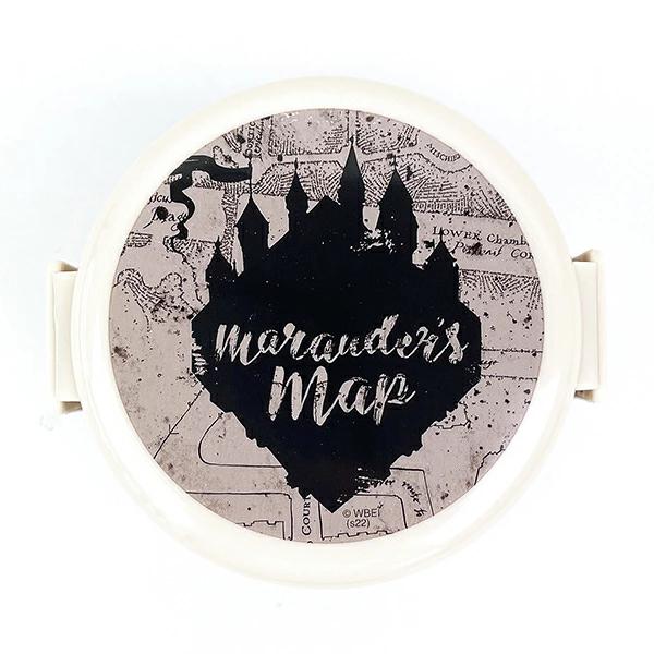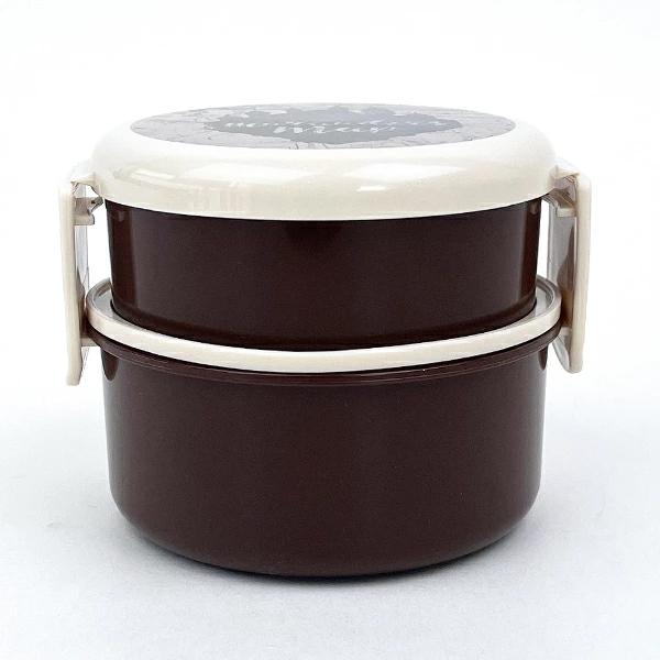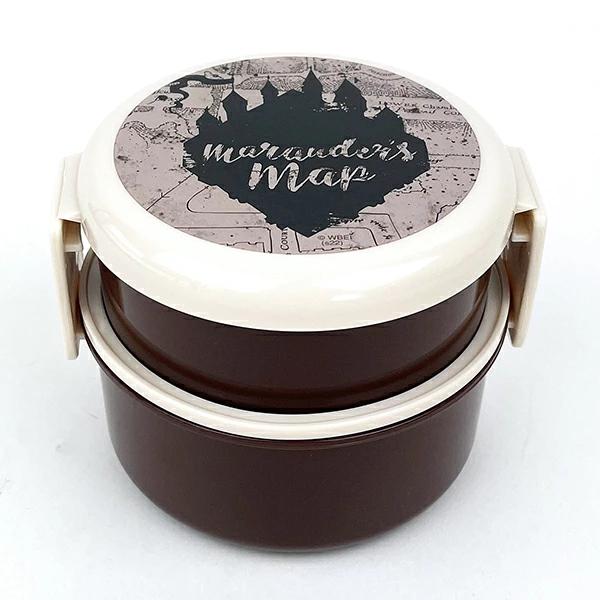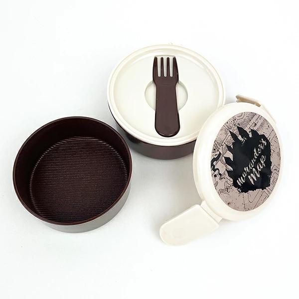 ハリーポッターの小ぶりな丸型のシンプル2段お弁当箱。内蓋収納フォーク(プラスチック製)が付いています。食べ終われば1段にコンパクトに収納できます◎食洗機・フタ・シールフタ・フォークを外して電子レンジ使用可◎【商品サイズ(約):奥行106×幅117×高さ90mm】【容量:上段230ml/下段270ml】【重さ:130g】
