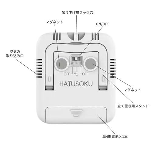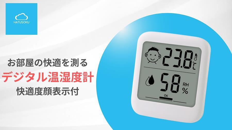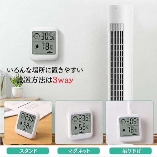 【シンプルで見やすい温湿度計】コンパクトなボディに温度と湿度が見やすくレイアウトされた温湿度計。カラーはホワイトでシンプルだからどんなインテリアにもマッチします。 【便利な快適度顔表示付き】危険な暑さへの注意喚起につながる快適度顔表示機能搭載。温度に合わせてアイコンの表情が変化します。また、湿度のレベルがインジケーターに表示されます。 【入手の容易な単4形電池で動作】本体は小型ですが、ボタン電池ではなく、単4電池で動作します。ボタン電池に比べて単4形電池は入手などが容易なので取り扱いしやすくなっております。 【用途広がる3wayの設置方法】設置方法はマグネットによる貼り付け、スタンドによる立て置き、フック穴による吊り下げの3種類に対応。いろんな場所に設置することができます。 【メーカー保証】ご購入より1年間【サイズ】68㎜×77㎜×15㎜ 53グラム 【仕様】温度範囲:-20℃~70℃ 温度精度:±1.0℃(10℃~40℃)±2.0℃(その他の温度域) 湿度範囲:25%~85% 湿度精度:±5%(35%~75%)±10%(その他の湿度域) 測定間隔:10秒
