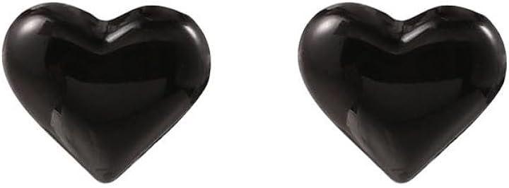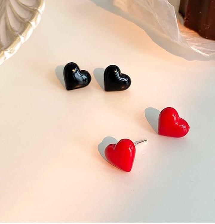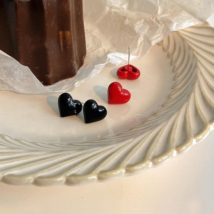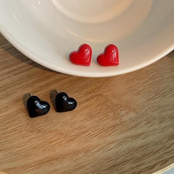 「デザイン」ブラック&ブラック ハートピアス 2つ入り / シンプルながらも個性的なハートピアスが、ブラックとレッドの2色展開で登場。