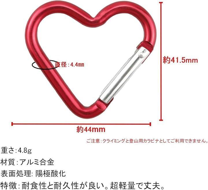 材質 アルミニウム合金(陽極酸化処理) サイズ 約44mm x 41.5mm 厚み 約4.4mm 重量 約4.8g/1個 カラー 7色(赤・青・黒・紫・ピンク・緑・金) 最大耐荷重 約1kg(目安) 内容物 カラビナx7個セット