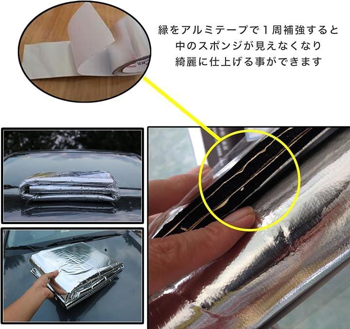 「エンジンルームの熱を強力に遮断」 この高性能アルミ遮熱シートは、エンジンルームの熱を効果的に遮断し、車のボンネットやエンジンカバーシートとして最適です。
