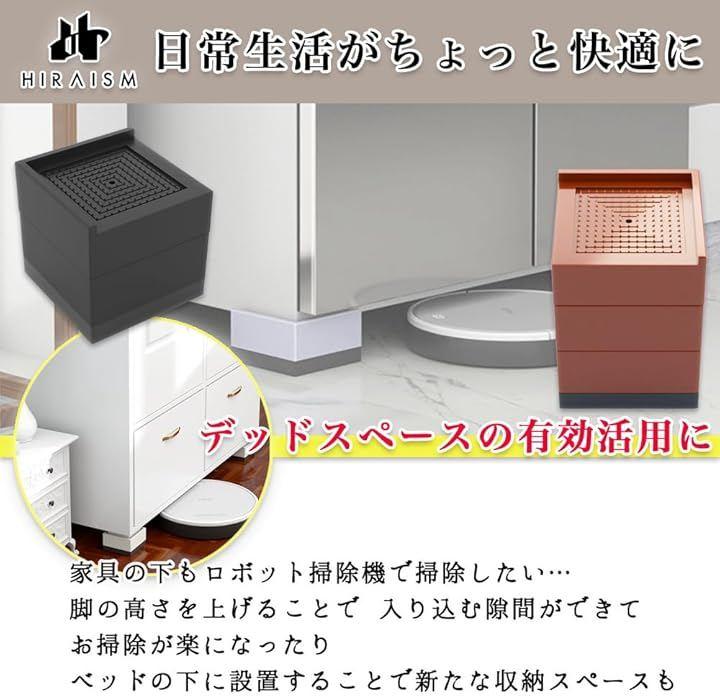 また、HIRAISMの継足は、脚があるものはもちろん、冷蔵庫や洗濯機等の足がない家電などにも対応できるこだわりのL枠設計です。