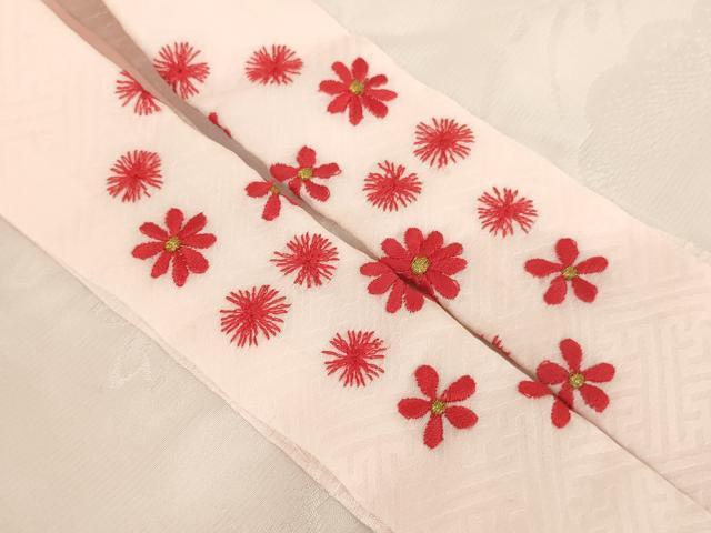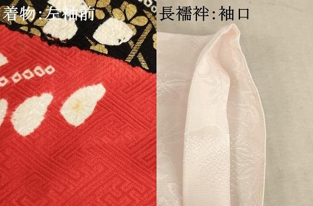 長襦袢【化繊・半衿刺繍】の状態は接写画像のように袖口に汚れがございますが
