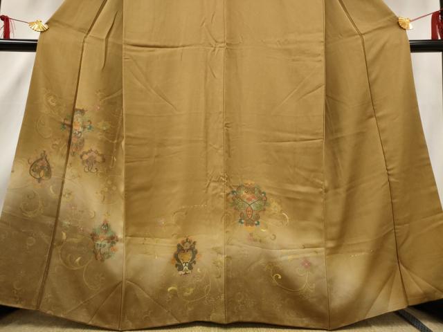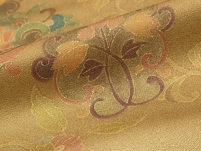 Heiwa-ya Kimono ■ Visiting Kimono, Sarasa Floral Pattern, Gradient Dye, Gold Accents, Pure Silk, Excellent Item, AABD9504st